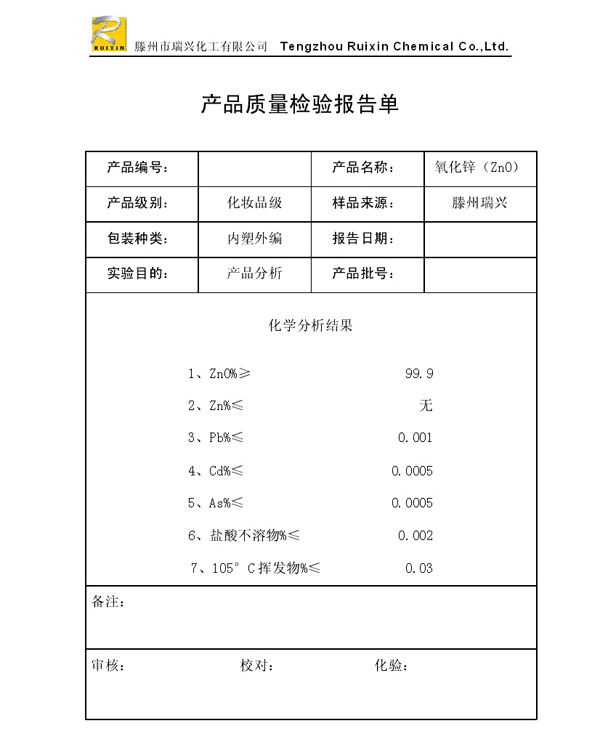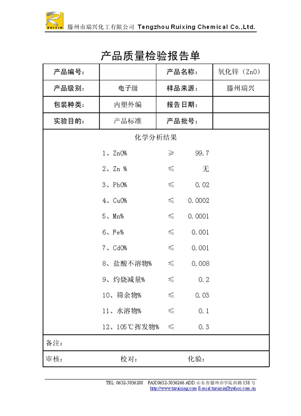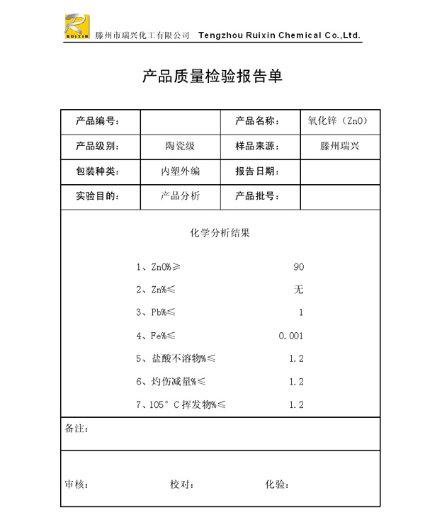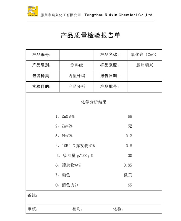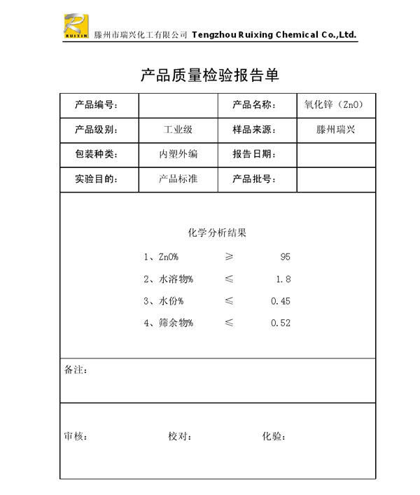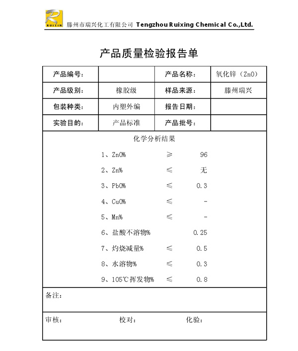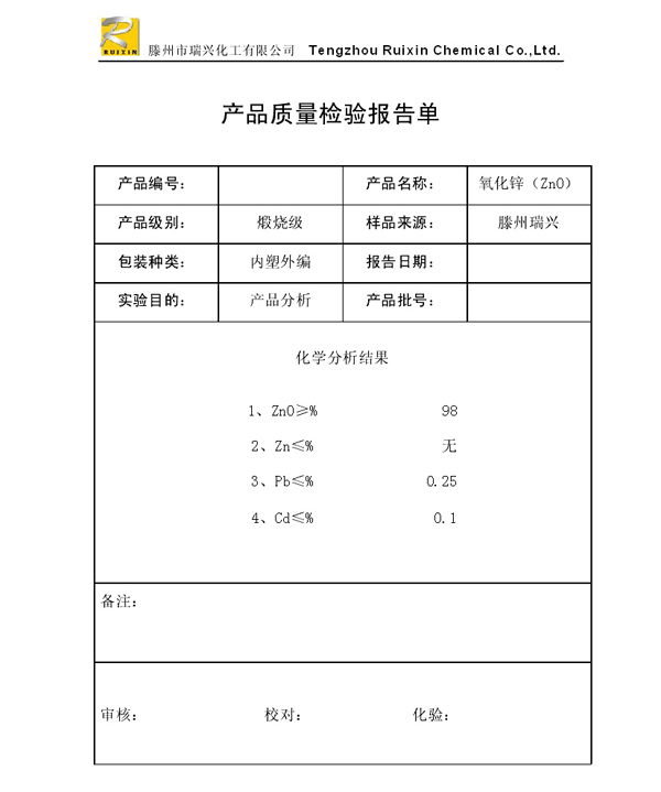 瑞興化工有限公司是生產(chǎn)氧化鋅的重點(diǎn)企業(yè),于2008年通過ISO9001:2008質(zhì)量管理體系認(rèn)證?!叭鹋d”牌氧化鋅在國(guó)內(nèi)擁有較大穩(wěn)定的市場(chǎng),并遠(yuǎn)銷東南亞、中東、中南美等國(guó)家和地區(qū),在國(guó)內(nèi)外享有較高聲譽(yù)。
